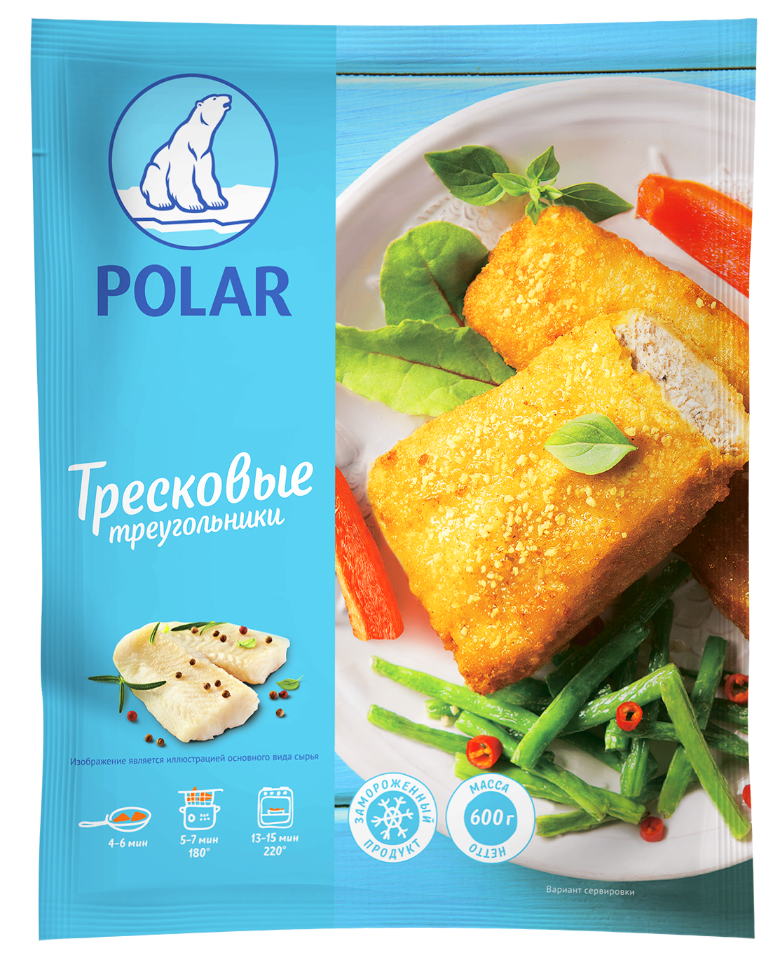 ТРЕУГОЛЬНИКИ Polar (филе треск.пород рублен.в пан.) 600г