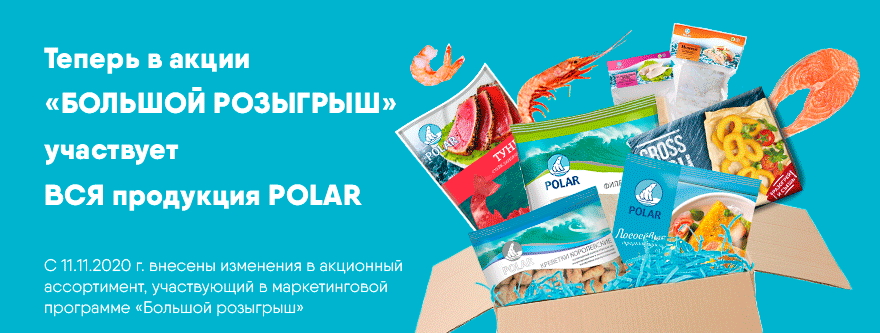 info@polarseafood.ru с пометкой «Победитель БОЛЬШОГО РОЗЫГРЫША».